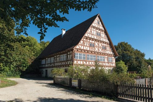 Die kurze Strecke kann von Geübten mit der ersten Etappe kombiniert werden. Wer dies seiner Kondition nicht zutraut, geht sie am besten einzeln. Mit einem Besuch des mühevoll angelegten Freilichtmuseums in Neuhausen ob Eck ist der Tag dennoch ausgefüllt. Start ist in Nendingen bei Tuttlingen. Der größte Teil des Aufstiegs folgt gleich nach dem Ortsrand. Dort beginnen auch die weitläufigen Wälder, die charakteristisch für diese Etappe sind. Entspannende Ruhe ist garantiert. Erst kurz vor dem Ziel öffnen sich weite Fluren. In Neuhausen gibt es Gästezimmer, Einkaufsmöglichkeiten und Gastronomie. Sollte im Ort selbst keine Unterkunft frei sein, bietet ein Hotel auf dem 1 Km westlich gelegenen Flugplatz weitere Kapazität.