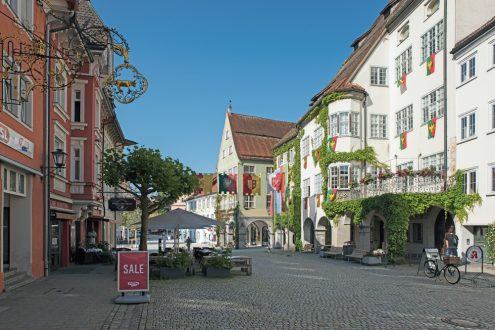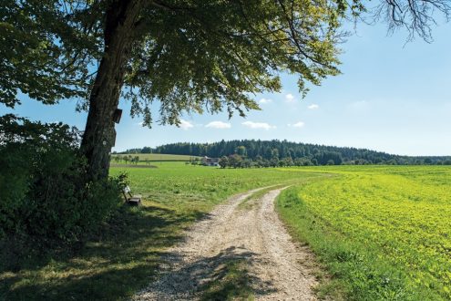 Ein letztes Stück leitet am Bodensee entlang, bevor der weitläufige Tettnanger Wald wartet. Am Stadtrand von Friedrichshafen beginnt das Eriskircher Ried, ein schönes Naturschutzgebiet. Es erstreckt sich mehrere Kilometer am Ufer. Bevor der Weg in die gleichnamige Gemeinde abbiegt, bietet ein Steg Gelegenheit, noch einmal über das blaue Wasser zu blicken. Hinter Eriskirch verläuft die Strecke meist durch dichte, ruhige Forste. Sie bilden im Gegensatz zu den vorhergehenden Routen eine ungewohnt, aber willkommen stille Landschaft. Ziel ist Tettnang. Die kleine Stadt im Bodenseekreis ist vor allem für hochwertigen Hopfen bekannt. Neben der edlen Bierzutat besitzt sie ein schönes Schloss und eine gemütliche Altstadt. Gästezimmer sind genügend vorhanden.