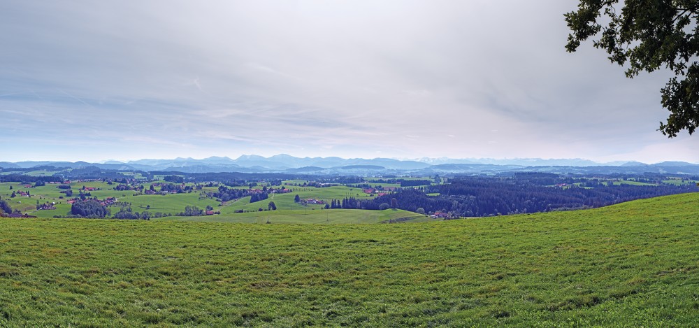 Die Abschlussetappe ist überschaubar. Das Ziel, der Schwarze Grat, liegt allerdings mitten im Wald. Daher ist die Abmarschstrecke zu addieren. Die kürzeste Variante ist der Abstieg nach Wengen. Sie bietet zusätzlich den Vorteil, dass sie an der bewirtschafteten Alpe Wenger Egg vorbeiführt. Dort kann bei typischen Allgäuer Speisen und erfrischendem Trank auf die herrliche Wanderung zurückgeblickt werden. Aus der schönen Altstadt geht es sogleich an den östlichen Rand von Isny. Anschließend leiten Nebenstraßen über sonnige Fluren bis Großholzleute. Die kleine Ortschaft liegt am Fuß des Höhenzuges der Adelegg und markiert den Beginn des 400 Höhenmeter messenden Aufstiegs. Er verläuft auf schönen Waldwegen. Hin und wieder bietet sich die Gelegenheit hinaus auf die grüne Wiesenlandschaft zu blicken. Der Schwarze Grat ist mit 1118 m über Normalnull nicht nur der höchste Punkt der gesamten Fernwanderung, sondern auch Württembergs. Auf seinem Gipfel steht ein Aussichtsturm. Auf seiner Plattform präsentiert sich ein traumhaftes Panorama über die dicht bewaldete Adelegg und auf die majestätischen Alpen. Vom lediglich 4 Km entfernten Wengen fahren Busse zurück nach Isny und an den Hauptbahnhof Kempten.