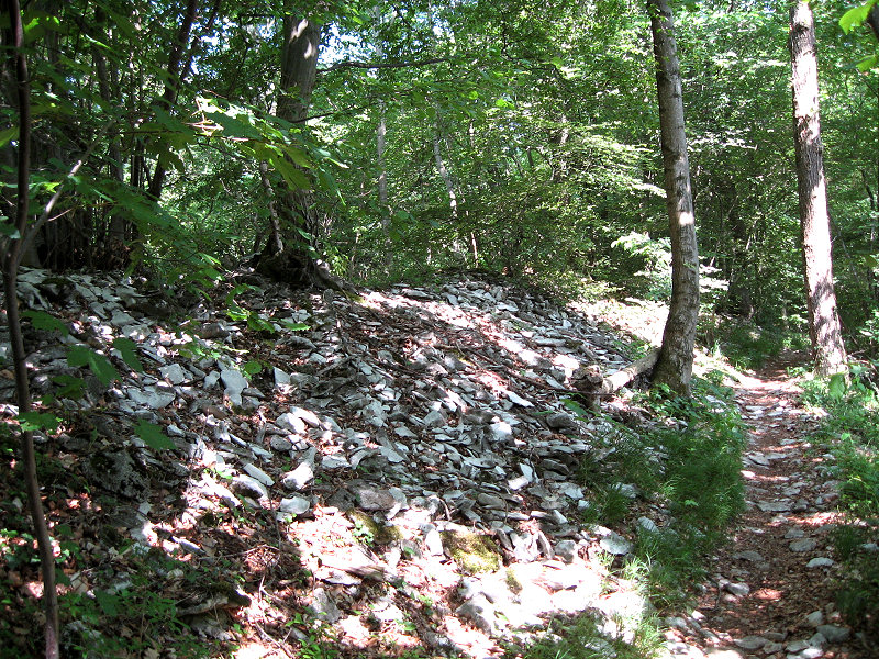 Sind Ihnen die Ansammlungen der Kalkscherben am Waldrand aufgefallen? Woher sie wohl stammen? Früher gab es hier auf der Kienbein-Berghalbinsel mehr Äcker als heute. Die Steine, die beim Pflügen an die Oberfläche kamen und bei der Bewirtschaftung lästig waren, wurden ausgelesen und an der Grundstücksgrenze oder am Waldrand aufgehäuft. Diese „Lesesteine“ bilden Wälle, allgemein Steinriegel genannt. Viele Steinriegel sind heute bewachsen und verstecken sich unter Hecken.