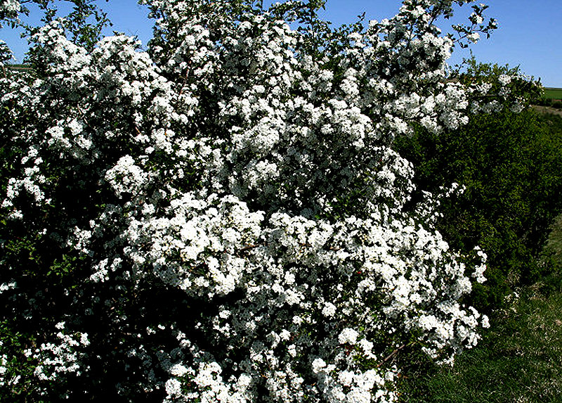 Der Weißdorn ist eine typische Heckenpflanze und ein Blickfang besonders im Mai, wenn der Strauch weiße Blüten trägt.